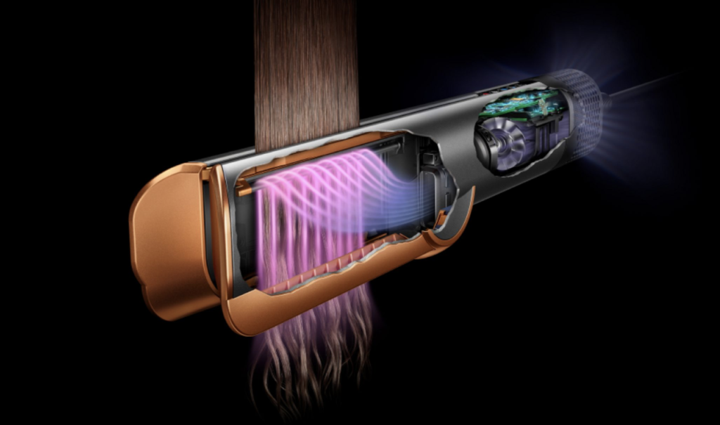 一般的なストレートアイロンは、高温の金属プレートで髪をプレスして伸ばしますよね。でも、Dyson Airstraitにはその「熱いプレート」が存在しません。