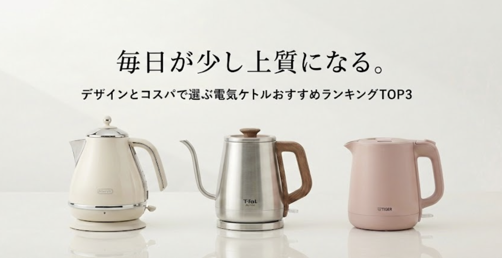 今回は、数ある電気ケトルの中から、多機能さよりも「佇まいの美しさ」と「納得の価格(コストパフォーマンス)」を重視して、3つのモデルを厳選しました。