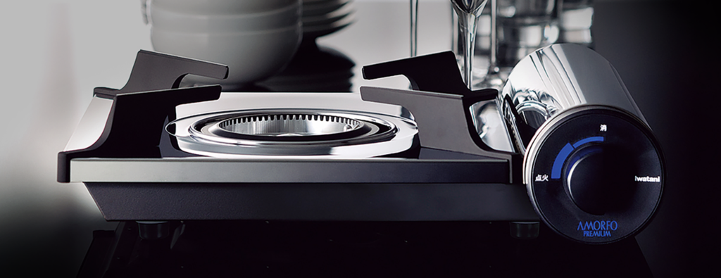 イワタニのアモルフォプレミアムは、輝くステンレス素材で圧倒的な高級感を放ちます。熱が逃げにくく少ないガスでしっかり加熱できる「内炎式バーナー」を採用しており、省エネ設計が魅力です。
