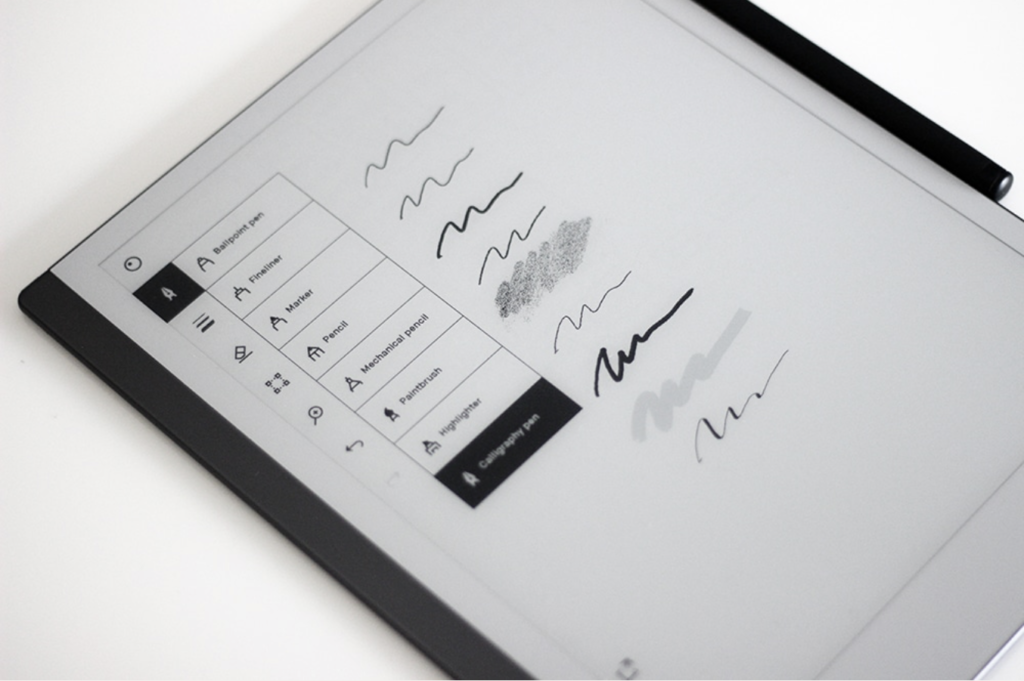 主な特徴まるで紙のような書き心地、通知やブラウザ等の非搭載による集中環境の提供、PDFやEPUBへの直接書き込み、クラウド同期