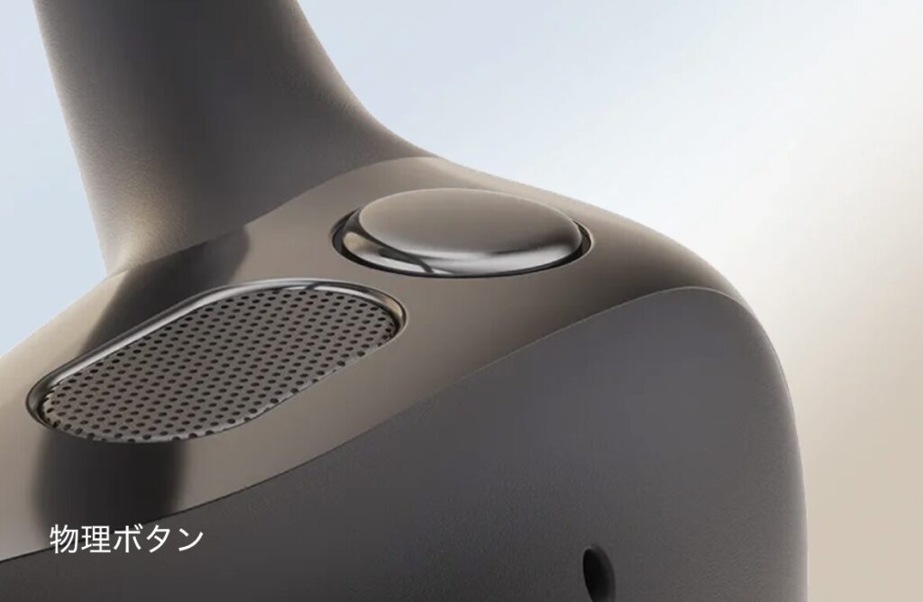 OPENFIT 2+は、従来のタッチ操作に加えて、新たにカチッと押し込める「物理ボタン」が搭載されました。
