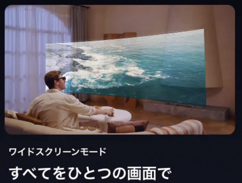 物理的なモニターを置く必要がないため、デスク周りをスッキリさせたいミニマリストの方や、1Kやワンルームで大きなテレビを置けないという方にとって、これ以上ない「省スペースな大画面ソリューション」と言えるでしょう。
