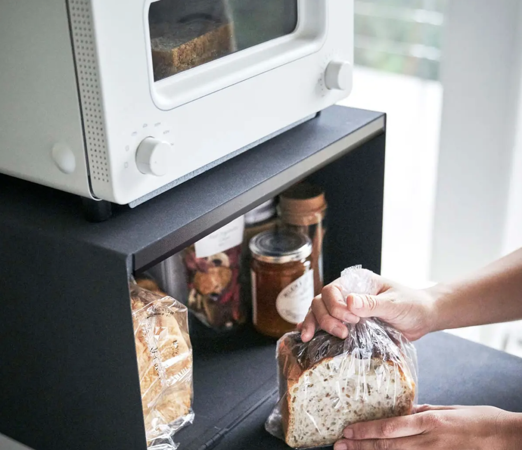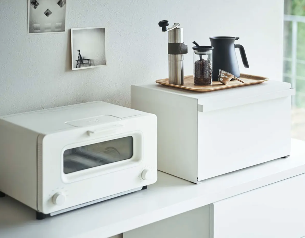 つまり、いまトースターを置いている場所の下に、まるまる27L分の巨大な収納空間が新たに生まれるということ。横に広げるのではなく「縦の空間」を有効活用できるため、キッチンの大切な作業スペースを一切減らすことなく、収納力を劇的にアップさせられます。バルミューダやアラジンなどのスタイリッシュなトースターと並べたときの相性は抜群で、まるで専用スタンドのような統一感が生まれます。